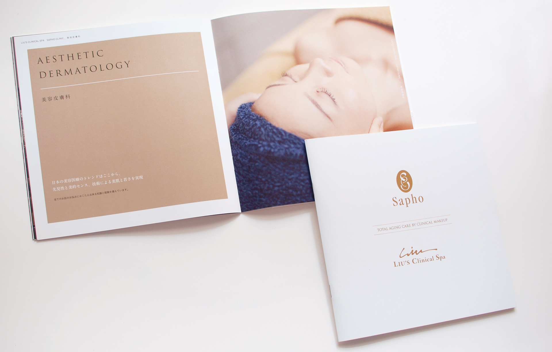 Sapho Clinic in Roppongi is the first clinic in Japan to specialise in cosmetic surgery and medicine, and the first in the world to provide medical aesthetic treatments. The booklet and website were designed to convey the numerous blissful treatments it provides in its luxurious spa to clients not only in Japan but also abroad.
